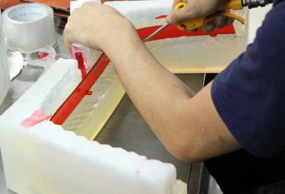 Make a Mold: The master pattern is encased in a silicone rubber to create a mold. Silicone is favored for its flexibility and ability to capture fine details. The silicone is poured over the master pattern and allowed to cure, forming a mold cavity.